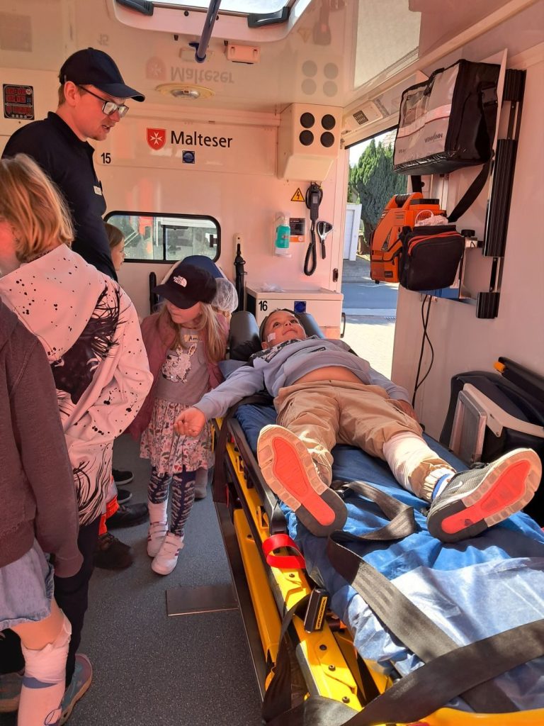 Ein weiteres Highlight war der mitgebrachte Rettungswagen. Den durften sich alle Kinder auch von innen anschauen und kennenlernen.