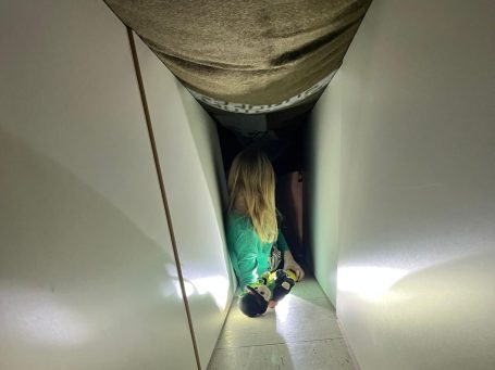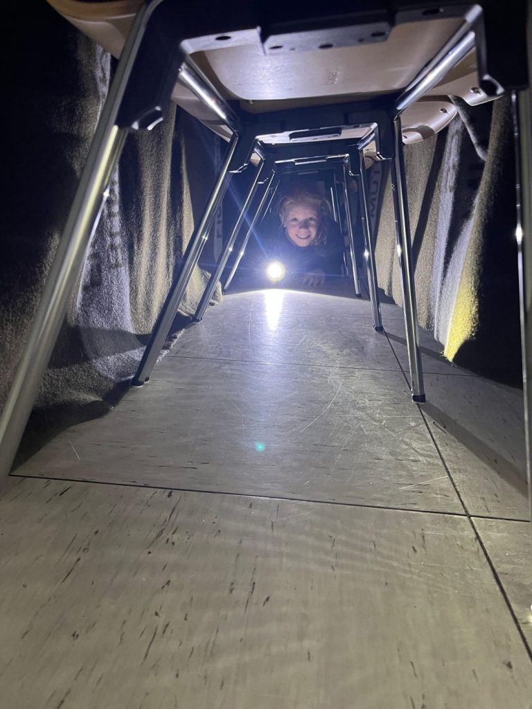 Anschließend durchquerten wir mit einer Taschenlampe unsere eigene kleine Atemschutzstrecke.